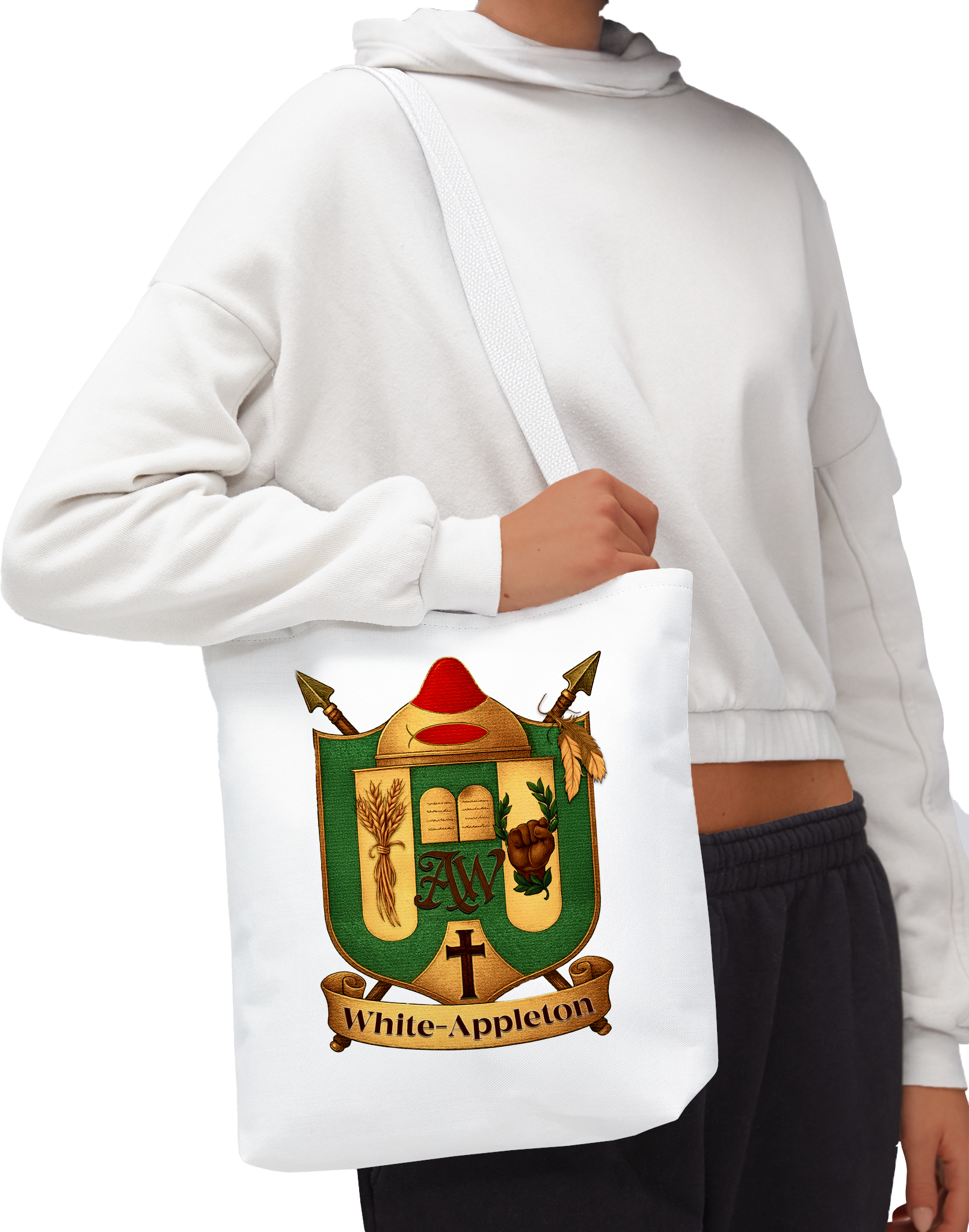 This Sturdy white canvas tote printed with the White-Appleton Family Crest. Spacious enough for everyday use or family gathering essentials.— allowing you to carry not just your essentials, but your family's story with every step.